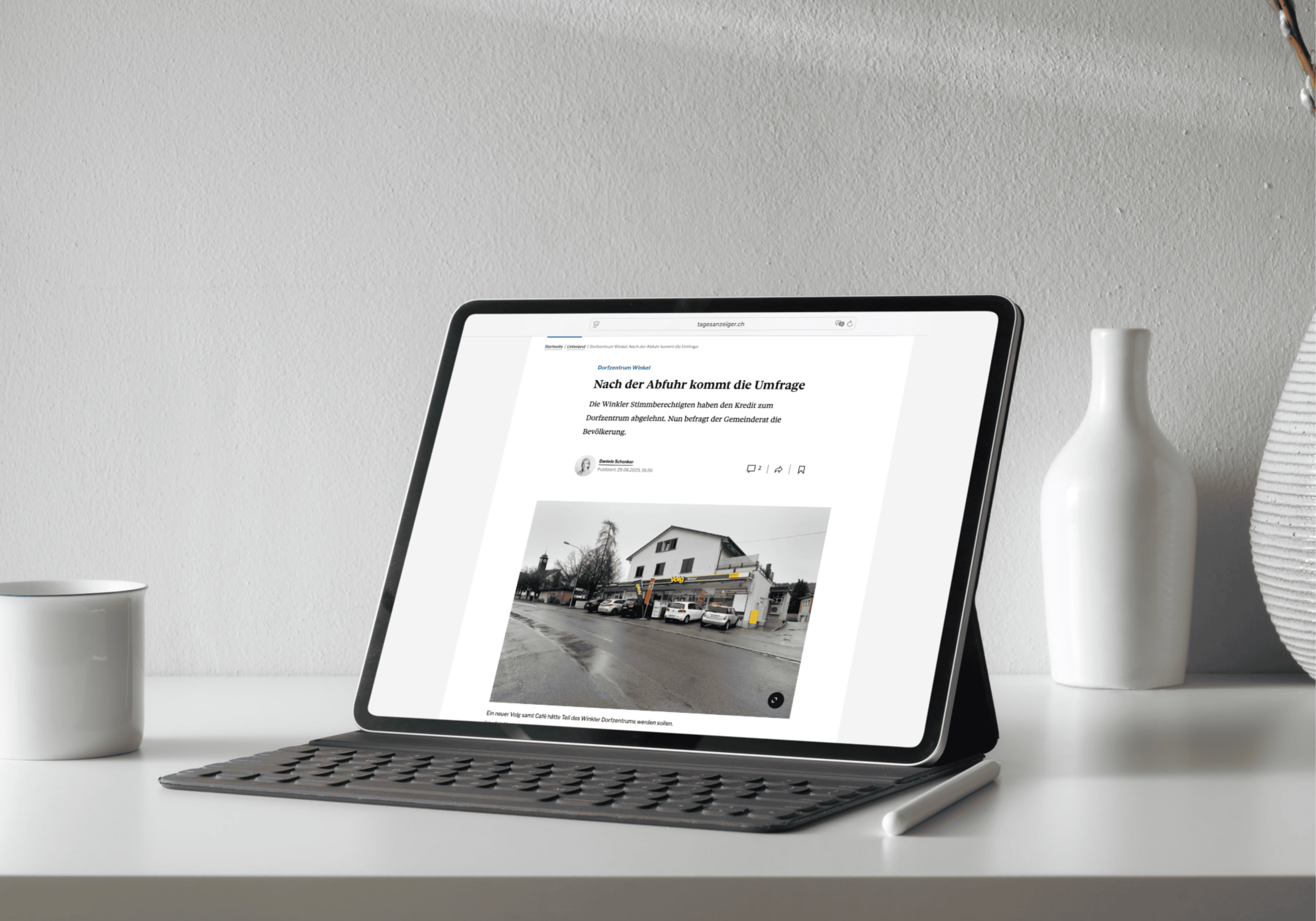 Im Vorfeld haben wir die Umfrage in der Dorfzeitung angekündigt und zur Teilnahme aufgerufen. Anschliessend versendeten wir an alle Winkler Stimmberechtigten die Umfrage zusammen mit einem Begleitschreiben. An der Umfrage konnten die Stimmberechtigten entweder brieflich oder online teilnehmen. Mit einer erfreulichen Rücklaufquote von über 40 Prozent erhielt die Gemeinde ein differenziertes Bild, was sich die Bevölkerung im Dorfzentrum wünscht und was nicht. Dies bildet die Grundlage für die Weiterentwicklung des Projekts durch den Gemeinderat.